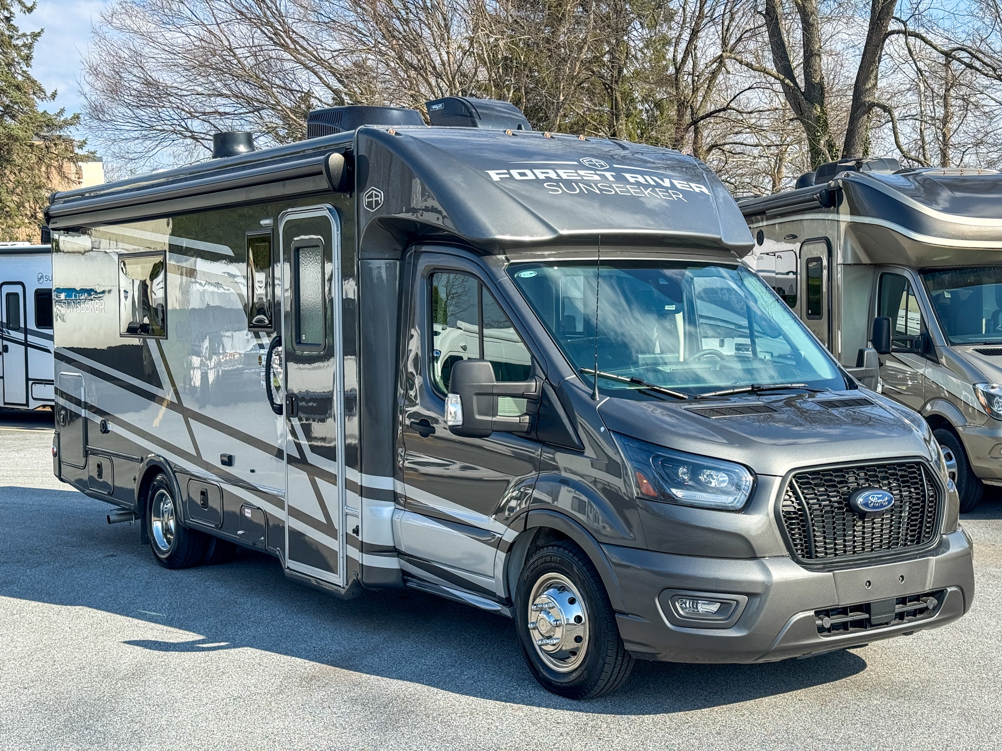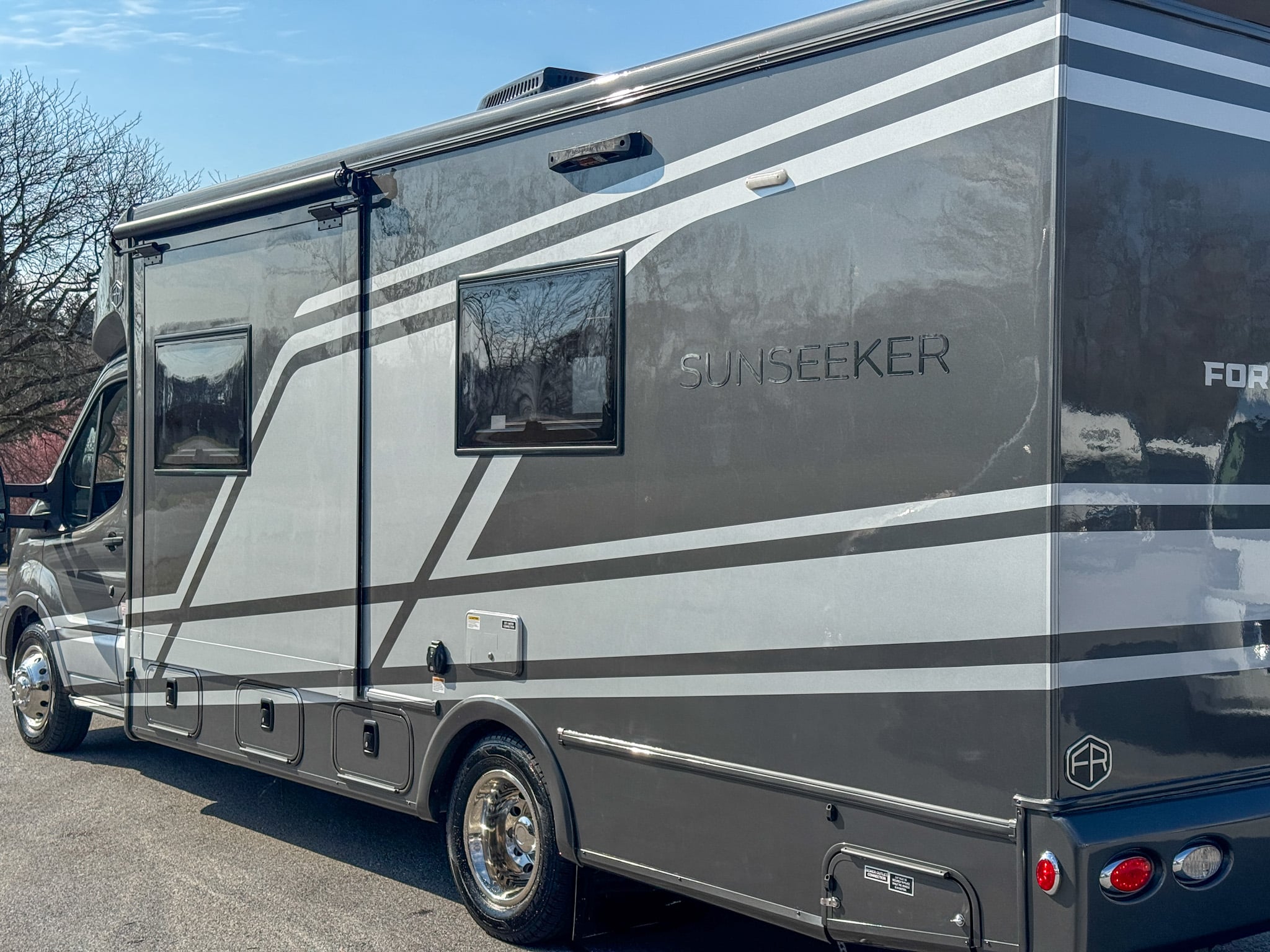 The Sunseeker 2370 delivers a smooth, confident driving experience while remaining easy to maneuver in campgrounds, parking areas, and urban settings. Advanced driver-assist features, backup and side-view cameras, and modern safety systems help reduce fatigue and improve overall confidence behind the wheel. Exterior features such as a power awning with LED lighting, exterior storage compartments, and an outside shower enhance outdoor living and make setup at each destination simple and efficient.