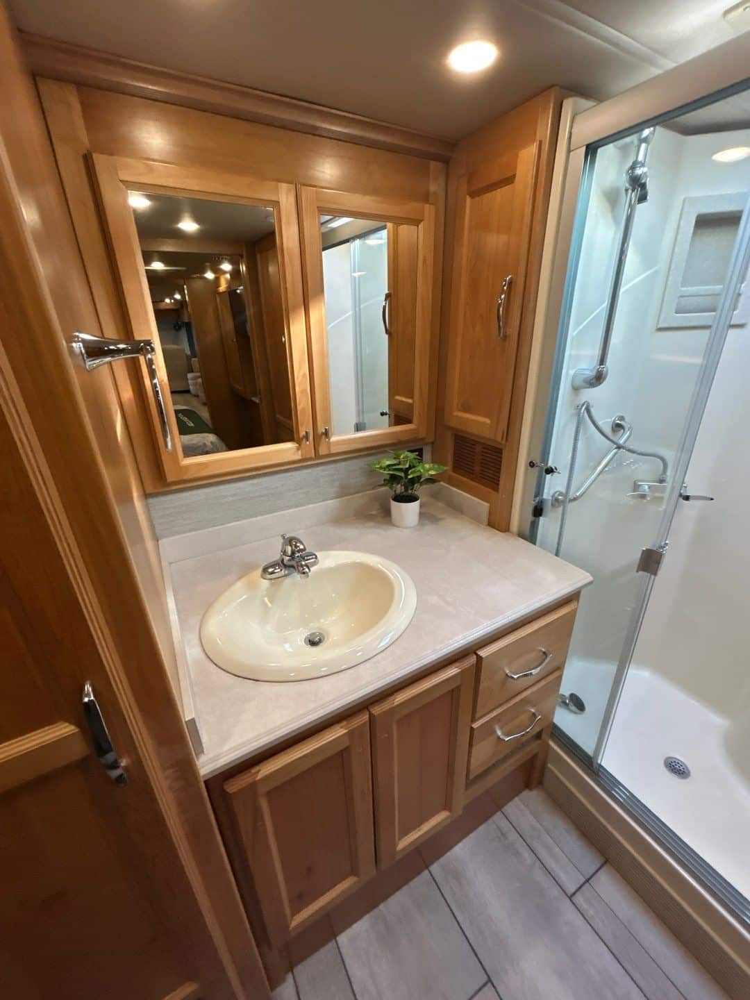 This coach is in a class all its own. Powerful, and stylish, the RED 340 is the definition of feeling comfortably at home, on the road. Its strong, 340 horsepower Rear Engine Diesel makes it a pleasure to drive with each and every easy press of the accelerator, and its luxurious interior and inviting features will be sure to impress.