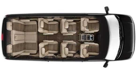 Seats 9 Passengers comfortably with headrests and seatbelts.